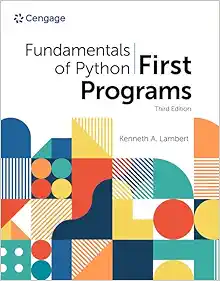 By Kenneth Lambert Lambert’s FUNDAMENTALS OF PYTHON: FIRST PROGRAMS, 3rd EDITION, uses an easygoing, conversational writing style to introduce programming and problem solving to students from all types of backgrounds. This edition is designed so that the program examples gradually transition from simple snippets to realistic applications. These applications include graphics, image processing, graphical user interfaces and data visualization.