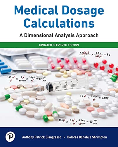 Medical Dosage Calculations: A Dimensional Analysis Approach helps you develop dosage calculation skills and transfer those skills to the safe administration of medication in a clinical environment. Using their pioneering dimensional analysis method, the authors progress from simple math topics to more complex ones. As you go, you’ll build both the core math skills and professional understanding needed to calculate drug doses accurately. With more than 1,000 realistic problems, the 11th edition update includes new and enhanced resources helping you visualize the complete dosage calculation process, including some of the more complex math concepts.