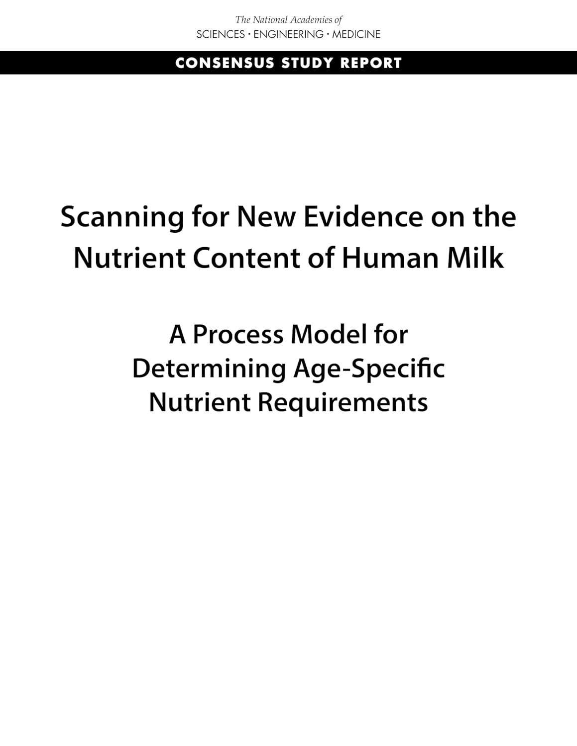 Scanning for New Evidence on the Nutrient Content of Human Milk examines the new and emerging evidence describing the nutrient content of human milk as well as the volume of milk consumed, both of which are needed to understand nutrient consumption by healthy breastfed infants. An evidence scan approach was used to summarize the status of the published literature on the nutrient content of human milk and to identify new evidence on nutrients in human milk that could inform the need for a systematic review as a component of the DRI process.